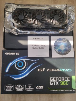 Tarjeta gráfica Gigabyte G1 GAMING con 4GB de memoria. - Modelo: GeForce GTX 960 - Edición G1 GAMING - Memoria: 4GB GDDR5 - Tecnología WINDFORCE - Soporte para SLI y DirectX 12