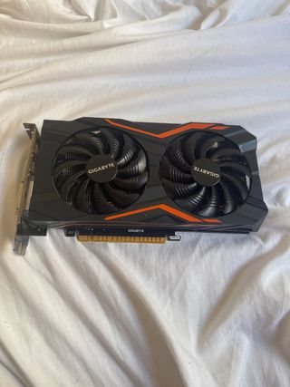 Tarjeta gráfica Gigabyte Nvidia 1050 Ti con doble ventilador. LA GRAFICA A DEJADO DE DAR IMAGEN, a veces la da y otras veces no, funciona cuando le da la gana. Desconozco el motivo.... la compre hace varios años y un amigo ( que entiende del tema ) al intentar abrirla para ver que le pasa no pudo por que hay uno de los tornillos comidos y no lo puede sacar. - Diseño con detalles en naranja. - Conexión PCI Express.