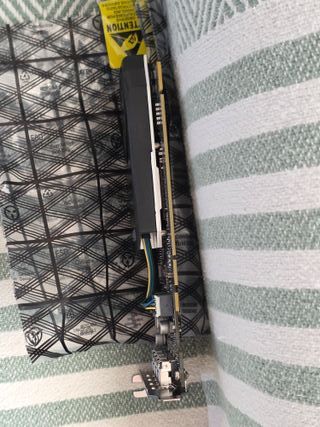 Tarjeta gráfica NVIDIA RTX 2060 Founders Edition. Funciona perfectamente y el rendimiento es bueno, lo único que tiene coil whine, es un ruido eléctrico que aparece cuando la tarjeta tiene mucha carga, las temperaturas son un poco altas. Estos dos fallos no impiden que la tarjeta funcione correctamente, pero se puede solucionar fácilmente, respecto al coil whine bastaría con desoldar el condensador que lo provoca y soldar uno nuevo, respecto a las temperaturas, se puede desmontar, limpiarla y cambiar la pasta térmica, yo mismo iba a hacerlo pero hay un tornillo que no he conseguido sacar, haria falta un extractor de tornillos.