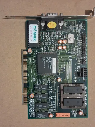 Tarjeta gráfica S3 Trio64V+ con interfaz PCI. - Chipset S3 Trio64V+. - Conexión EDO Memory. - Fabricada en Taiwán.