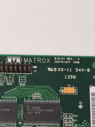 Tarjeta gráfica Matrox G100 con 8 MB de memoria, una de las primeras gráficas AGP y representante de la prestigiosa marca Matrox, muy reconocida por su calidad de imagen y fiabilidad en entornos profesionales y domésticos. Gráfica Matrox G100 original Interfaz AGP 8 MB de memoria de vídeo Excelente calidad de imagen 2D Ideal para PCs retro y sistemas clásicos Compatible con Windows 9x y DOS Marca Matrox, referencia histórica en gráficos Estado muy bueno y bien conservada Lista para montar Una tarjeta muy apreciada por coleccionistas y montajes retro. TESTADA Y FUNCIONANDO CORRECTAMENTE !!!!!!