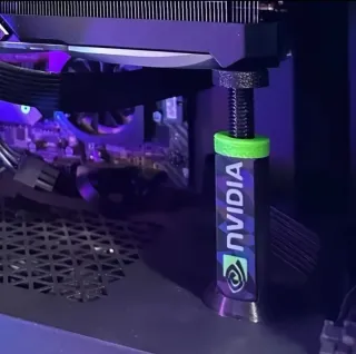 Soporte para tarjetas gráficas de PC. - altura de 70mm a 125mm ajustable con diametro 30mm - Diseño en color negro. - Detalle de logo Nvidia en verde. - Detalle de texto Radeon en rojo. Precio por unidad Para envio minimo 2 unidades GPU HOLDER