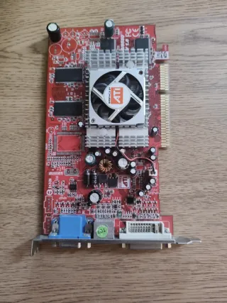 Tarjeta gráfica ATI Radeon 9550 con interfaz AGP. - Componente de hardware para ordenador. - Diseño compacto para montaje en PC. -ideal para proyectos retro