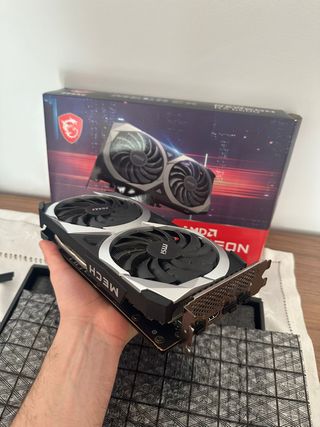 Tarjeta gráfica MSI Radeon RX 6600 8GB (doble ventilador). -Buen rendimiento para gaming en 1080p -Usada durante 3 años principalmente para jugar, con uso normal. -Nunca overclockeada ni usada para minería, siempre dentro de temperaturas recomendadas por el fabricante. -Será entregada en caja no original (ver imágenes) WALLAPOP NO ME NOTIFICA LOS MENSAJES, SI DESEA UNA RESPUESTA MAS CORTA MANDA WHATSAPP AL 642328993