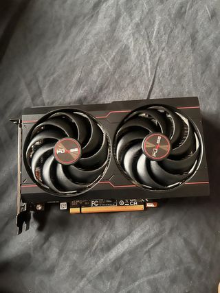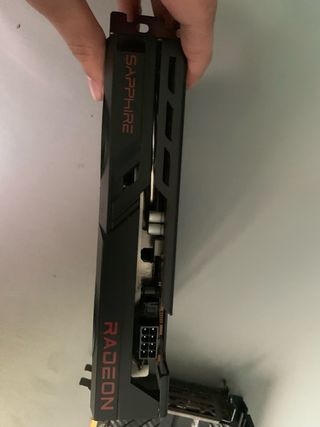 Tarjeta gráfica Sapphire Pulse Radeon RX 6600 con 8GB de memoria. Permite jugar a prácticamente cualquier juego en 1080p, y a algunos en 2K. Va perfecta, poco uso. Consumo de energía muy bajo, 100-120w en gaming. Requiere Slot PCI express y conexión adicional de energía de 8 pines.