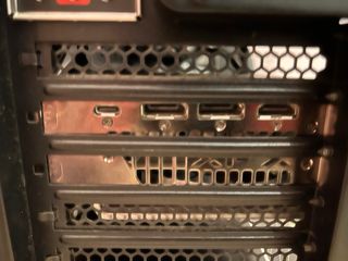 Tarjeta gráfica ATI Radeon con 512MB de memoria. - Ventilador integrado para refrigeración. - Conexiones de vídeo visibles - conexión vga y hdmi