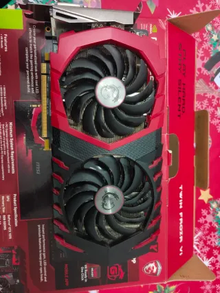 Tarjeta gráfica MSI GTX 1650 super 4gb gddr6. Equivale en rendimiento a una gtx 1060 6gb o una RX 580 4gb. Es decir, que es más potente que una gtx 1650 normal. Adjunto también algunas capturas mostrando el funcionamiento de la tarjeta. Se entrega con su caja original. Requiere de un conector de 6 pines de alimentación y consume unos 100w. Salidas de vídeo DVI, HDMI y displayport. El único punto negativo que tiene es que el conector HDMI tiene holgura y no queda bien anclado. Si movéis la torre, pues hay que ajustar de nuevo el cable o se irá la imagen. Sólo envíos. Precio no negociable