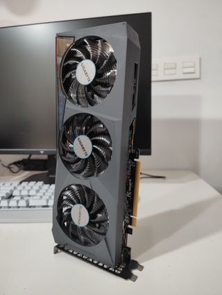 Tarjeta gráfica Gigabyte RX 7600 XT 16 GB. Se vende porque he comprado otra tarjeta nvidia. Excelente estado, muy bien cuidada. La tarjeta es mia, no se ha overclockeado ni manipulado, tampoco para mineria ni cosas raras. Los ventiladores funcionan muy bien, refrigeran un montón. Probada con juegos 1080p en calidad ultra y 1440p en calidad alta, excelente rendimiento. - Diseño de triple ventilador. - Refrigeración eficiente.