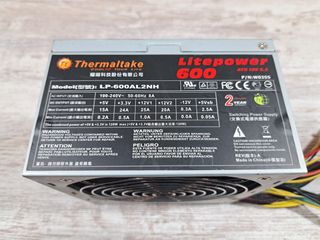 Fuente de alimentación Thermaltake LitePower 600 de 600W, modelo LP-600AL2NH. En perfectas condiciones estéticas y de funcionamiento. Ideal para un ordenador doméstico, de oficina o gaming. Dispone de alimentación para tarjeta gráfica. Limpiada internamente con compresor de aire. Conectores: 1 x 20/24 pines (MB) 1 x 8 pines CPU 5 x Sata 6 x Molex 1 x Floppy 1 x PCIE 6 Pines 1 x PCIE 6+2 Pines Más fuentes de alimentación y material de informática en mi perfil. TAGS: GTX RTX 1050 1060 1070 1080 2060 2070 2080 3060 3070 3080 3090 RX XT 560 570 580 5700 5800 6700 6800 PS3 PS4 XBOX PC WII GAMER GAMING GTA APEX COD FALLGUYS
