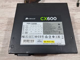 Fuente de alimentación Corsair CX600 de 600. En perfectas condiciones estéticas y de funcionamiento. Ideal para un ordenador doméstico, de oficina o un equipo gaming. Certificación 80+ Bronze. Dispone de alimentación para tarjeta gráfica. Limpiada internamente con compresor de aire. Conectores: 1 x 20/24 pines (MB) 1 x 8 pines CPU 6 x Sata 4 x Molex 1 x Floppy 2 x PCIE 6+2 Pines (16) Más fuentes de alimentación y material de informática en mi perfil. TAGS: GTX RTX 1050 1060 1070 1080 2060 2070 2080 3060 3070 3080 3090 RX XT 560 570 580 5700 5800 6700 6800