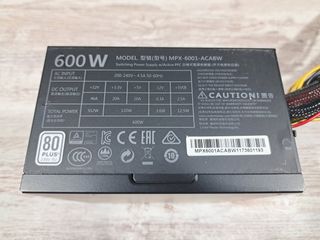 Fuente de alimentación CoolerMaster MasterWatt Lite MPX-6001-ACABW de 600W. En perfectas condiciones estéticas y de funcionamiento. Ideal para un ordenador doméstico, de oficina o un equipo gaming. Certificación 80+ White. Dispone de alimentación para tarjeta gráfica. Limpiada internamente con compresor de aire. Conectores: 1 x 20/24 pines (MB) 1 x 8 pines CPU 6 x Sata 3 x Molex 1 x Floppy 2 x PCIE 6+2 Pines (16) Más fuentes de alimentación y material de informática en mi perfil. TAGS: GTX RTX 1080 2060 2070 2080 3060 3070 3080 3090 RX XT 5700 5800 6700 6800