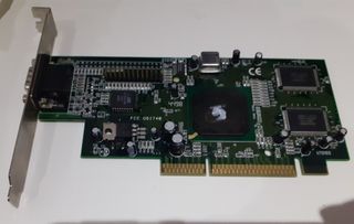 No trato en persona. Solo envio por Wallapop-InPost. Tarjeta de video con 64Mb, conexion AGP y doble salida VGA. En su dia se retiro funcionando. Como ya no la puedo probar es para piezas. No negociable.