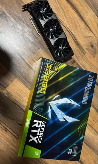 Tarjeta gráfica Zotac RTX 3080 con 10GB de memoria VRAM. La tarjeta funciona perfectamente en rendimiento y estabilidad, ideal para gaming a 1440p. Detalle a tener en cuenta: una de las ventoinhas hace un ligero ruido a bajas RPM. No afecta al rendimiento ni a la estabilidad, y en carga o con curva de ventilación personalizada no se aprecia. Ha sido usada en PC personal, sin minería. Se entrega solo la tarjeta, sin caja original.