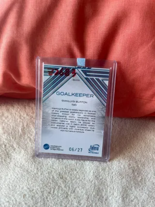 Tarjeta coleccionable de Gianluigi Buffon, el legendario portero. - Edición numerada. - Diseño con detalles gráficos modernos. - Incluye el nombre del jugador y su posición.