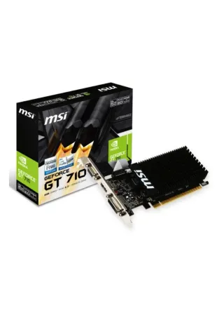 Tarjeta gráfica MSI GeForce GT 710. - Modelo: GT 710 - Memoria: 2GB DDR3 - Interfaz: PCIe 2.0 - Conexiones: HDMI, DVI, VGA