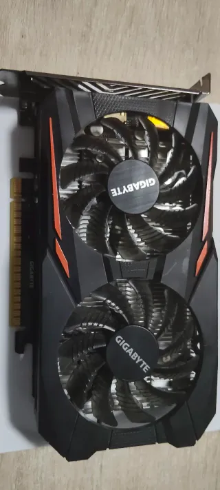 Tarjeta gráfica Gigabyte GTX 1050 OC de 2 GB. con dos ventiladores para una mejor refrigeración. - Modelo: GTX 1050 OC - Marca: Gigabyte - Diseño con doble ventilador.provada una hora antes de envalarla.