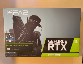 Tarjeta gráfica KFA2 GeForce RTX 2070 Super con 8GB de memoria GDDR6. En buen estado, nunca se ha overclockeado. - Modelo: RTX 2070 Super - Memoria: 8GB GDDR6 - Puertos: HDMI, Display Port - Tecnología: Turing, Ray Tracing Cores, NVIDIA DLSS - OC: 1-Click OC