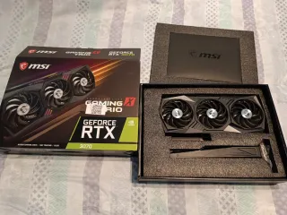 Tarjeta gráfica MSI Gaming X Trio con GPU GeForce RTX 3070. -Pequeño defecto con los leds, se encienden los que se ven en las imágenes. Por lo demás funciona correctamente. - Diseño de triple ventilador para una refrigeración óptima. - Arquitectura NVIDIA Ampere. - Compatible con Ray Tracing y DLSS. - 8 GB GDDR6 - Se ha cambiado la pasta térmica recientemente - Usado recientemente, sin problemas. -Con la caja, papeles y soporte originales. Preguntar cualquier duda.