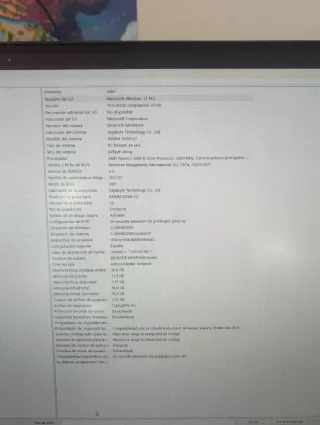 Ordenador de sobremesa para gaming en buen estado. - Caja de PC con ventiladores RGB. -Procesador: AMD Ryzen 5 pro 3350 with radeon vega graphic 3.30 ghz -RAM: 16gb -Tarjeta gráfica: nvidia GeForce gtx 1650 -Fuente de alimentación 650w -Disco ssd de 222gb y otro disco duro de 2 tb Y -windows 11 home - también tengo la caja en la que me llegó