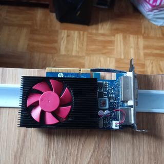 Tarjeta gráfica Sapphire Radeon HD6450 de perfil bajo, en perfecto estado. Incluye la tarjeta gráfica y los accesorios que se ven en las fotos. - Modelo: Radeon HD6450 - Perfil bajo (Low Profile) - Incluye CD de controladores y manual. Conector HDMI , vga y dvi Tdp 18w , bajo consumo ideal para equipos de pequeño formato ya que ademas es low profile . Las marcas que se ven en el disipador son porque se añadio un ventilador para que estuviese mas fresca, aunque realmente no es necesario puesto que es una tarjeta pasiva.