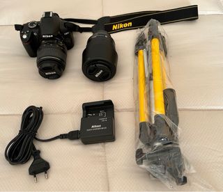 Cámara Nikón DX 18-55 + objetivo Nikon 55-200 + cargador + tripode + tarjeta gráfica. En perfecto estado.