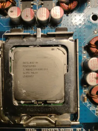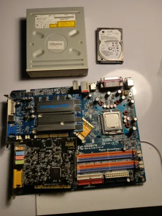 `Potente kit para montar un PC Gaming de la era Windows XP. IDENTIFICACIÓN: PACK B - "La Bestia de XP": Placa Azul: Gigabyte GA-8IPE775-G con puerto AGP. Cerebro (CPU): Intel Pentium 4 a 3.00 GHz (LGA775). Gráfica (Plata): GeForce FX con disipador gigante silencioso. Audio (Negra): Tarjeta Sound Blaster Live! 5.1 (SB0100). Fuente: Planet Case 450W. Disco: HDD 160GB SATA. Grabadora: LG DVD Super Multi (2006). Extra: Cable VGA Premium DCU 3m (NUEVO). Incluye disipador suyo Procedente de liquidación de stock antiguo. Ideal para nostálgicos. MÁS PACKS DISPONIBLES EN MI PERFIL (A, C y D).`