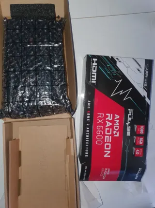 Tarjeta gráfica MSI Radeon RX 6600 8GB (doble ventilador). -Buen rendimiento para gaming en 1080p -Usada durante 3 años principalmente para jugar, con uso normal. -Nunca overclockeada ni usada para minería, siempre dentro de temperaturas recomendadas por el fabricante. -Será entregada en caja no original (ver imágenes) WALLAPOP NO ME NOTIFICA LOS MENSAJES, SI DESEA UNA RESPUESTA MAS CORTA MANDA WHATSAPP AL 642328993