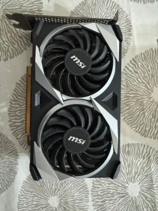 Tarjeta gráfica MSI GTX 1650 OC Edition, tiene un problema en las memorias de la tarjeta, realmente no tengo el equipo para arreglarlo pero si tiene solución, se me ha quemado mi ordenador por eso no me la quedo para arreglarlo. - Modelo OC Edition para un rendimiento superior. - Compatible con DirectX 12. - Diseño con doble ventilador para una mejor refrigeración.