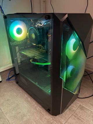 Ordenador gaming con iluminación RGB. 1 año de uso (garantía en vigor), Windows 11 y todo limpiado. -Panel lateral de cristal templado con su plástico todavía puesto + cajas de las piezas. -Procesador AMD ryzen 5 5600X 4.6Ghz Socket AM4 -Placa base Asus Prime B450M-A II Socket AM4 -16 Gb memoria RAM corsair vengeance RGB DDR4 3600 MHz CL18 -Tarjeta gráfica RTX 4060 Ti VENTUS 2X Black OC 8Gb GDDR6 DLSS3 -Fuente de alimentación Corsair CX750 80 Plus Bronze 750W -Disco duro 1TB M.2 lexar NM610 PRO PCle Gen3 x4 No me SSD -Caja/torre MSI MAg Forge 120A Airflow negra Se vende por cambio de PC.