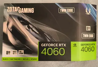 Tarjeta Gráfica Zotac Gaming GeForce RTX 4060 Twin Edge 8GB GDDR6 DLSS3 📦 Esta como nueva, 1 año de uso, la vendo para cambiar a una superior. ✅ Funciona perfectamente. Tengo su caja y plastico con el que venia, manual y caja intacta.