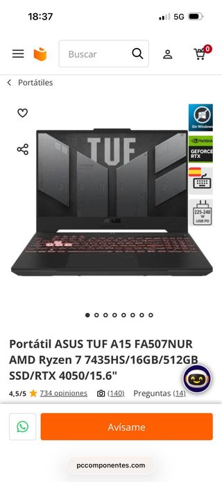 Portátil ASUS TUF A15 en color negro. - Procesador AMD Ryzen 7 7435HS - 24 GB de RAM - SSD de 512GB - Tarjeta gráfica NVIDIA GeForce RTX 4050 6gb - Pantalla de 15.6 pulgadas Solo com 3 meses de uso esta nueva la doy con Caja original .... Vendo porque cambie a una de Escritorio