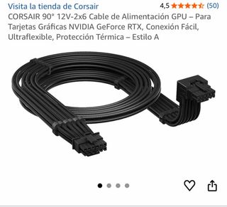 Nuevo, sin uso. Cable de alimentación GPU Corsair de 90 grados con conector 12V-2x6. Diseñado para tarjetas gráficas NVIDIA GeForce RTX. - Conexión fácil. - Ultraflexible. - Protección térmica. - Estilo A.