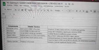 PC GAMING POTENTE - LISTO PARA JUGAR Vendo PC gaming del año 2022, en perfecto estado, muy bien cuidado y sin roces ni desperfectos. Funciona como el primer día, nunca ha tenido fallos y se ha usado siempre con cuidado. Especificaciones: • Tarjeta gráfica: NVIDIA GeForce RTX 3060 Ti • Procesador: Intel Core 15 Memoria RAM: 16 GB • Almacenamiento: • SSD 550 GB (arranque rápido) • HDD 1 TB (mucho espacio) * Ideal para gaming en alto/ultra, edición de vídeo, streaming o trabajo exigente. Arranca rápido, es estable y mueve juegos actuales sin problema. Se vende por cambio de equipo. No hago cambios.