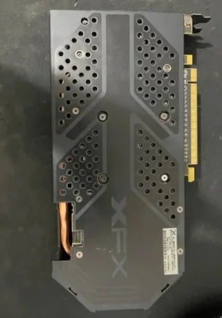 Tarjeta gráfica XFX con procesador AMD. - Diseño con tres ventiladores para una refrigeración eficiente. - Incluye tarjeta de garantía y manual de soporte. - Perfecta para jugar en 1080p - QHD