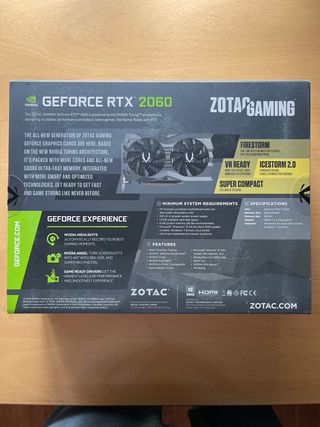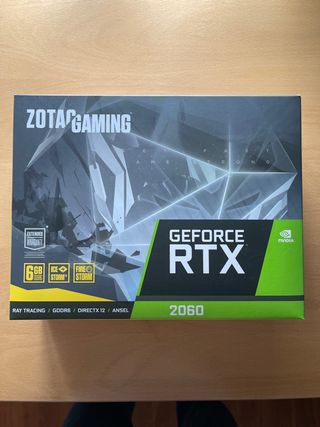 Tarjeta gráfica Zotac Gaming GeForce RTX 2060 con 6GB de memoria GDDR6. Ideal para gaming y aplicaciones gráficas. - Soporte para Ray Tracing, DirectX 12 y NVIDIA Ansel. - Tecnología IceStorm y FireStorm. - No ha sido overclockeada.