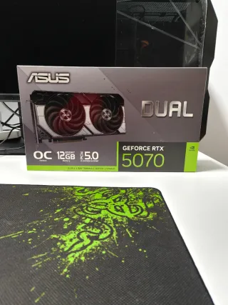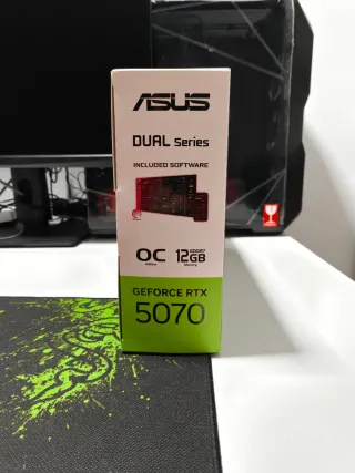 Tarjeta gráfica ASUS DUAL OC con 12GB de memoria. - Modelo: GeForce RTX 5070 - Capacidad: 12GB GDDR7 - Interfaz: PCI Express 5.0 - X1 HDMI X3 DisplayPort Cómo se comprueba en más fotos está sin abrir. Literalmente se ha comprado y no se ha usado