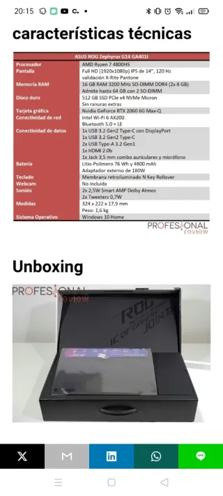 Portátil ASUS ROG Strix G15 G513IC-HN039 en color negro. Procesador: AMD Ryzen 7 4800H Gráfica: NVIDIA GeForce RTX 3050 4GB Pantalla: 15.6" 144Hz Full HD RAM: 16GB DDR4 SSD: 512GB NVMe (ultrarrápido) Teclado RGB con iluminación personalizable Sistema ROG Intelligent Cooling Estado: Funciona perfectamente Se ha usado principalmente para estudios y algo de gaming Incluye cargador original usado. Precio negociable. Mandad propuestas serias