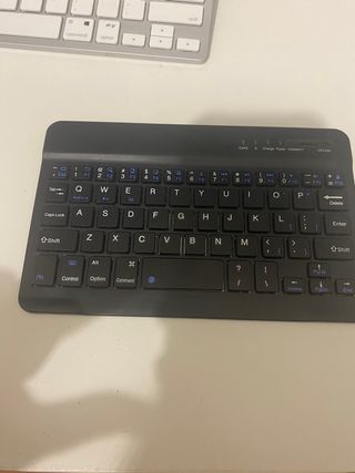 teclado bluetooth compatible con tablet samsung y ipad. Funciona perfectamente y incluye el cargador