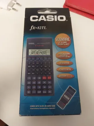 Calculadora científica Casio fx-82TL con pantalla de 2 líneas. - 229 funciones (159 científicas). - Teclas de plástico. - Incluye funda rígida. - Funciona con batería.
