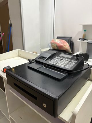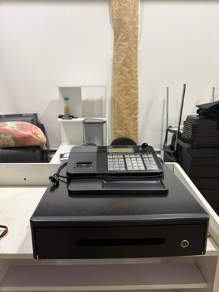 Caja registradora Casio en color negro. - Cajón para efectivo con ranura. - Teclado numérico. - Pantalla integrada.
