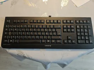 Teclado Cherry en color negro, completamente nuevo. - Diseño elegante y moderno. - Teclas de alta calidad para una escritura cómoda.