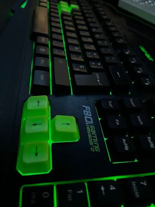 Teclado Gaming de membrana KeepOut F80 Está prácticamente nuevo, es un buen teclado y muy silencioso. Cuenta con 7 colores diferentes y 3 modos de luz. También se pueden grabar macros. Cable trenzado muy resistente. Le falta una patilla para levantar el teclado, pero la diferencia de altura es mínima, no es un problema. Lo entrego en su caja y envoltorio original. Sólo envíos.