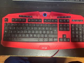 Teclado Tempest Apocalypse. No le van las teclas de la N al 0 de la derecha. Las demás van todas. Lo vendo porque funciona, pero no sé arreglar eso. Luces rojas, azul y lila. - Diseño gaming. - Con cable.