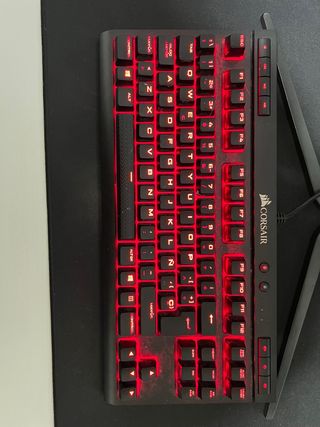 Teclado mecánico para gaming Precio negociable. - Diseño compacto y robusto. - Teclas multimedia dedicadas. - Conexión USB. - Compatible con software Corsair iCUE. - Siwtches rojos. - Unico fallo la tecla del TAB esta mas suelta.