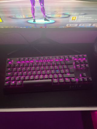 Teclado mecánico para gaming Razer BlackWidow V2. - Retroiluminación personalizable en púrpura. - Diseño robusto y duradero.