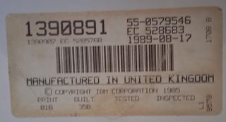 Teclado mecánico fabricado en el Reino Unido. - Modelo: 1390416 - Fabricado por IBM Corporation en 1985. - Número de serie: 55-0344459 - Fecha de fabricación: 1988-09-06