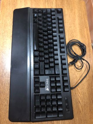 Teclado para gaming de la marca INNOBO. Diseño moderno y funcional. - Retroiluminación RGB. - Conexión USB. - Reposamuñecas integrado.