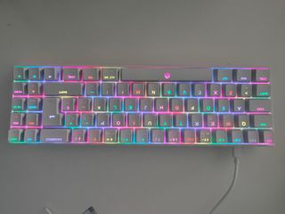 Teclado mecánico GK61 con retroiluminación RGB. - Switches amarillos y grises. Envio tambien teclas blancas enteras que las cambié por ver diferente el teclado. - Diseño compacto 60%. - Cable USB desmontable.