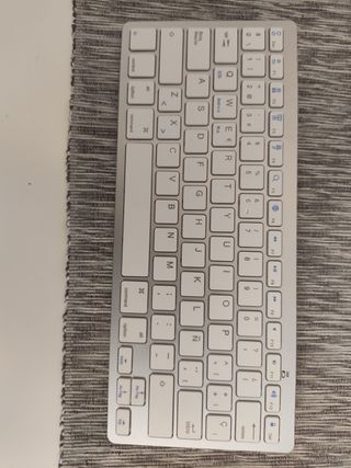 Estado del producto Prácticamente nuevo Teclado Bluetooth mod BKB800 Español Ultra-Delgado para iPad/iPad Pro/iPad Air/iPad Mini/iPhone y Todas Sistemas de iPadOS/iOS, - Blanco. • Teclado en español: todas las teclas están diseñadas en la escritura española, includos los símbolos. • Sin Cable, teclado táctil inalámbrica enlaza su dispositivo como tabletas y teléfonos móviles, que traerá más comodidad cuando se necesita para escribir. • Batería de vida larga: 30 días de utilizar continuo y el modo de sueño automático permiten hasta medio año entre cambios de batería (2 x pila AAA no incluidas)..