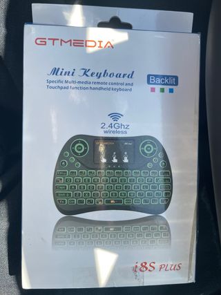 Teclado mini inalámbrico GTMEDIA i8S Plus, en perfecto estado. - Diseño compacto y ligero. - Funciones multimedia. - Teclado QWERTY completo. - Touchpad integrado. - Retroiluminación.